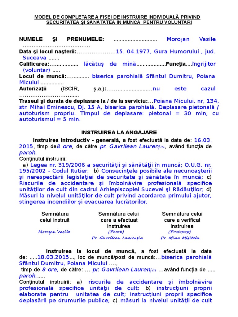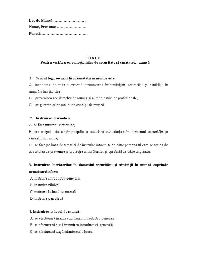Muncitorul va fi admis la lucrul de sine stătător numai după verificarea cunoştinţelor lui de către conducătorul locului de muncă şi consemnarea acestui fapt în. Pentru deplasarea salariaților la/de la locul de muncă. Fişa colectivă de instruire în domeniul securităţii şi sănătăţii în muncă. Free online dictionary in english, german, french, spanish. Cu privire la obligațiunile și drepturile lucrătorilor.