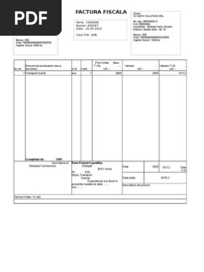 • model factura fiscala creat in word si excel. Factura fiscala se emite in termen de maxim 15 zile lucratoare de la data incheierii tranzactiei.