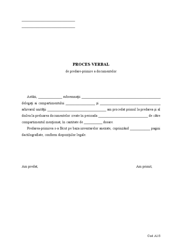 Proces Verbal De Predare Primire Documente