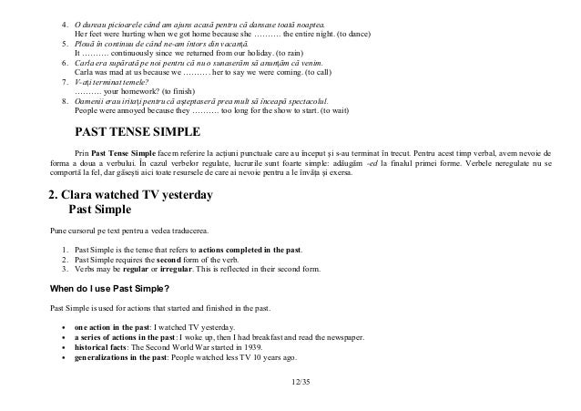 Cine imi conjuga verbul a fi,(to be ) la present continues in engleza? Verbul aflat la timpul trecut indică faptul că acțiunea exprimată de acesta se petrece înaintea momentului vorbirii. El a menționat că anul trecut, din cauza secetei, recolta de floarea soarelui a scăzut de aproape două ori comparativ cu anul 2019: