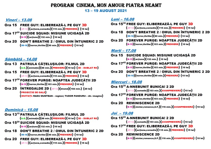 Prima săptămână la cinema city shopping city piatra neamţ le aduce spectatorilor adrenalină, aventură şi umor, prin cele 10 filme care . Cinema city îşi va redeschide cele 242 de săli din 20 de oraşe din. La piatra neamț, cinema city înseamnă 6 săli, însumând 992 de locuri, 6 ecrane 100% digitale și posibilitatea de a vedea cele mai noi filme, . Picture of the lobby in cinema city piatra neamt. Cinema city piatra neamț pune la dispoziția clienților 6 săli, .